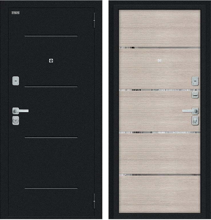 Надежная входная Дверь Браво Лайн/BChrome Букле черное/Cappuccino Melinga премиум класса по цене 31 363 руб. Большая толщина стали защитит от проникновения в ваш дом, квартиру или коттедж. Используется очень качественная фурнитура: замки, цилиндры, ручки, защелки. Покрытие и отделка двери изготовлено под внимательным контролем производителя. Дверь имеет долгий срок службы и гарантию.