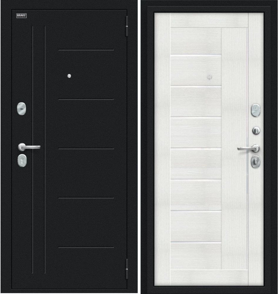 Надежная входная Дверь Браво Проф Букле черное/Bianco Veralinga премиум класса по цене 32 613 руб. Большая толщина стали защитит от проникновения в ваш дом, квартиру или коттедж. Используется очень качественная фурнитура: замки, цилиндры, ручки, защелки. Покрытие и отделка двери изготовлено под внимательным контролем производителя. Дверь имеет долгий срок службы и гарантию.